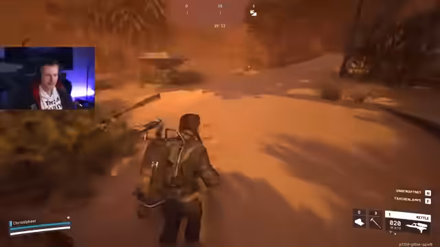 02:27:53Nach einer erneuten Verbindungsaufforderung findet sich der Streamer unbewaffnet und ohne Schild im Spiel wieder, was die Situation erheblich erschwert. Er erwähnt, dass das erneute Verbinden auch nach einem Spielabsturz oder durch Alt F4 funktioniert. Trotz der misslichen Lage, in der er sich als 'nackig' beschreibt, versucht er, das Beste daraus zu machen und spekuliert, dass er aufgrund seiner Wehrlosigkeit schnell aus dem Spiel genommen werden könnte. Er überlegt, ob es sinnvoll wäre, direkt wieder aus der Runde zu gehen, entscheidet sich aber dagegen und versucht, sich 'sneaky' zu verhalten. Die Situation, ohne Ausrüstung in den Kampf zu ziehen, wird als 'cooler Move' ironisch kommentiert, während er sich darauf vorbereitet, vom nächsten Gegner 'angefurzt' und umgeworfen zu werden.