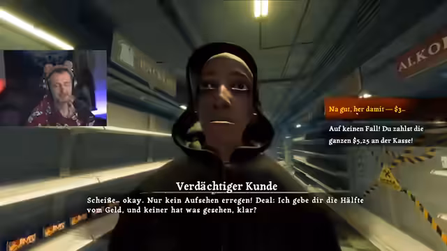 03:48:44Ein verdächtiger Kunde wird beim Diebstahl erwischt. Er versucht, den Streamer mit einem Deal zu bestechen: Die Hälfte der gestohlenen Ware und Schweigen im Gegenzug. Doch der Streamer besteht auf den vollen Betrag und vertreibt den Dieb. Er ist verärgert über den Vorfall, fährt aber trotzdem mit seiner Arbeit fort und denkt über die Grenzen zwischen fleißigen Kunden und those, die es nicht wert sind, bedient zu werden.