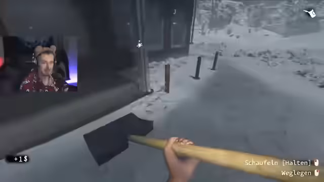 02:55:08Ein nächtlicher Kunde, der sich verlaufen gibt, will einen Pilz sammeln, behauptet aber, im September losgezogen zu sein. Der Streamer ist skeptisch und will den Mann nicht reinlassen. Daraufhin bietet der Kunde ihm drei Bretter an, die er im Wald gefunden hat. Trotz der Bedenken und der seltsamen Geschichte entscheidet sich der Streamer, den Kunden mit den vielversprechenden Brettern hineinzulassen. Die Bretter haben einen Wert von einem Dollar und könnten für die Verteidigung wichtig sein.