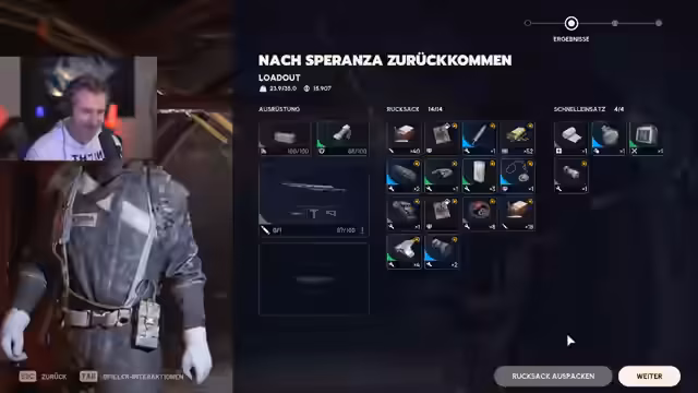 02:51:06Der Streamer kämpft mit seinem vollen Inventar in Arc Raiders und der Entscheidung, ob er sein eigenes, besseres Gear mit in die Runden nehmen soll. Er zögert, da er befürchtet, die wertvollen Gegenstände zu verlieren. Er muss Gegenstände zerlegen, um Platz zu schaffen und Materialien wie Stoff für Verbände zu erhalten, da er keine Heilmittel mehr hat. Er bereitet sich auf die nächste Runde vor, indem er Munition und einen Schlüssel mitnimmt. Er erwähnt, dass er oft mit kostenlosem Gear spielt, um seine wertvollen Gegenstände zu schonen. Er entscheidet sich schließlich, eine andere Map, 'Elektromagnetischer Sturm', zu spielen, die ebenfalls einen hohen Schwierigkeitsgrad hat, aber weitläufiger ist und keinen Schlüssel erfordert. Er hofft, dass diese Map ihm mehr Erfolg bringt als die vorherige, die er als zu verwinkelt empfand.
