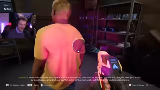 02:10:41Der Streamer beginnt mit einer Inspektion und weist die Zuschauer darauf hin, dass jeder Überlebende eine UV-Lampe zur Prüfung auf Infektionsspuren erhalten muss. Die Nutzung von Waffen ist untersagt, stattdessen gibt es Belohnungen bei korrekter Durchführung. Wer Zombie-Körperteile zu schmuggeln versucht, muss eliminiert werden, da diese als biologische Waffen betrachtet werden. Die Prozedur ist streng und erfordert eine genaue Untersuchung jedes Einzelnen.