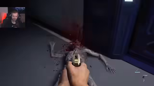 00:08:58Der Protagonist gerät in einen erbitterten Kampf gegen mutierte, tumorbedeckte Wesen, die ihn durch enge, blutverschmierte Gänge jagen. Diese Gegner sind extrem widerstandsfähig und mutieren sogar andere Lebewesen. Nach einem heftigen Kampf, bei dem der Streamer explizit 'Bis einer stirbt' erwähnt, gelingt es ihm, aus dem unterirdischen Bereich zu entkommen und in einen höher gelegenen Bereich der Anlage zu gelangen. Dort findet er Ausrüstungsgegenstände und bereitet sich auf die weiteren Herausforderungen vor.