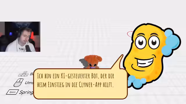 02:37:23Trotz der Warnung bricht der Spieler weiterhin die Schulregeln und wird vom Schulleiter bestraft. Er muss die Schultoiletten mit der Zunge saubermachen. Anschließend wechselt der Stream vollständig das Spiel und startet in Cleaning Up. Der Spieler registriert sich bei einer Reinigungs-App, erhält grundlegende Anweisungen von der KI Schwammi und nimmt seinen ersten Auftrag an, um ein unordentliches Zimmer zu säubern.