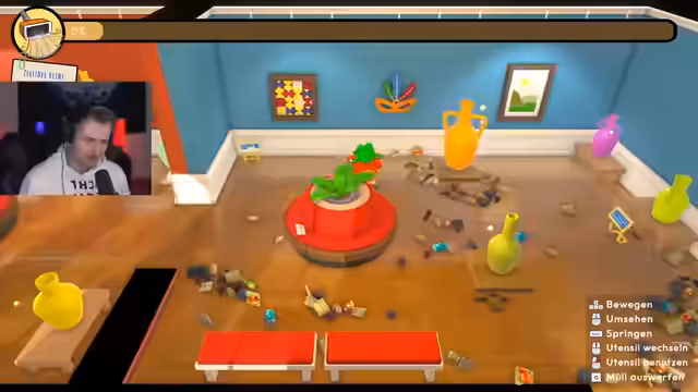 02:55:11Nachdem der erste Putzauftrag erfolgreich abgeschlossen ist, wird die Wohnung zu einer Burg. Der Spieler erhält neue Utensilien und einen besseren Staubsauger und übernimmt anspruchsvollere Aufträge, bei denen er vorsichtig zerbrechliche Vasen reinigen muss. Nach Abschluss mehrerer Reinigungsjobs und einem positiven Feedback vom Kunden wechselt der Stream zu einer weiteren Demoversion des Spiels Schrott, einem Rennspiel mit dem Ziel, Objekte zu rammen.