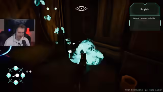 01:02:38Der Streamer erlebt technische Schwierigkeiten, darunter das plötzliche Verschwinden des Avatars und merkwürdige Effekte im Spiel. Ungeachtet dessen beginnt er mit der Demo des Spiels Bakur, einem Stealth-Adventure, in dem der Spieler einen Hund steuert. Nach anfänglichen Schwierigkeiten mit der Steuerung und den Tastenbelegungen wird der erste Trainingskurs gestartet, der das Laufen, Springen und Ducken einführt. Der Tonfall des Streamers ist dabei ungeduldig und er kommentiert das Gameplay mit viel Ausrufen und Verwunderung über die Spielmechanik.