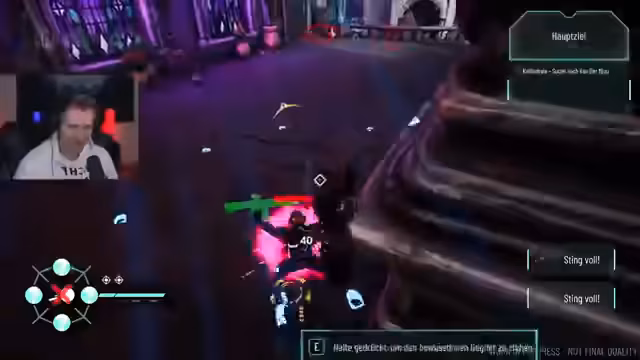 01:24:53Nach dem Stealth-Training folgt ein Kampftraining, in dem der Spieler lernt, sich gegen Gegner zu verteidigen. Hier wird eine Pistole eingeführt, die überhitzen kann, wenn sie zu oft benutzt wird. Der Spieler lernt, gegnerischen Angriffen auszuweichen und Gegner mit niedriger Gesundheit sofort auszuschalten. Ein ausgelöster Alarm führt dazu, dass alle Gegner im Raum aufmerksam werden und Verstärkung angefordert wird. Nach erfolgreichem Abschluss des Trainings wird der Spieler in die „richtige Welt“ entlassen, wo die eigentliche Mission beginnt: die Suche nach „Wandermiau“, einem berüchtigten Schurken im Schloss. Die Mission erfordert das Betreten des Schlosses und das Lösen kleiner Rätsel, wie das Auffinden von Codes durch Belauschen von Wachen. Der Streamer entdeckt auch geheime Gänge und sammelt „Chips“ ein, die als Währung oder Belohnung dienen könnten.