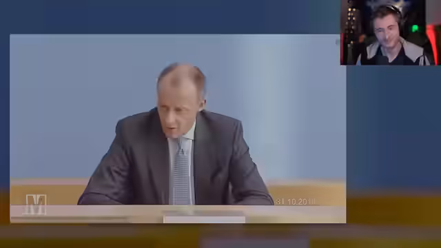 00:21:15Gemeinsam mit dem Publikum wird das Video analysiert, das Merz als potenziellen Bundeskanzler darstellt. Der Streamer gibt zu, dass Merz in seinem Aussehen der Serienfigur Stromberg ähnelt und macht sich über dessen politische Positionen lustig, insbesondere über seine frauenfeindlichen und anti-migratorischen Aussagen. Er betont, dass Merz trotz seines öffentlichen Images als gemäßigt gilt, aber in Wirklichkeit eher dem rechten Spektrum zuzuordnen ist.