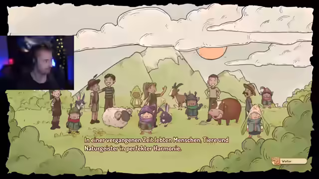 01:26:00Die Geschichte des Spiels wird weiter erzählt, wobei es um Gier, Ausbeutung und die Zerstörung der Harmonie geht. Ein einsames Wesen wartet auf der Insel, um die Harmonie wiederherzustellen. Der Spielercharakter wird als Menschlein beschrieben, das einem langweiligen Alltag entflohen ist und nun ein Abenteuer erlebt. Nach einem Unfall findet sich der Charakter auf der Insel wieder und wird von Tomte, einem reisenden Händler, gefunden. Tomte erzählt von der Geschichte der Insel, auf der einst Harmonie herrschte, die aber durch die Menschen zerstört wurde. Der Charakter erhält ein Haus und eine Werkbank. Auf der Weide wurden früher Tiere gehalten. Der Charakter wird die Möglichkeit haben, sich als Farmer zu versuchen. Der Laden neben der Weide diente als Dreh- und Angelpunkt für die Harmonie. Tomte vermacht dem Charakter den Laden und zeigt ihm die Farmflächen. Er führt den Charakter zum Harmoniebaum, der von Dornen der Disharmonie befallen ist. Nur wahre Harmonie kann die Dornen vernichten. Der Charakter soll dem Harmoniebaum und der Insel helfen, indem er Waren an die Waldgeister verkauft, um Harmonie zu sammeln.