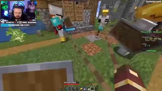 00:43:34Während der Erkundung gerät das Team in gefährliche Situationen, unter anderem mit einem Creeper, der für Aufsehen sorgt. Sie entscheiden sich, sich in einem Haus zu verschanzen, während sie weiter auf den Villager-Handel warten. Währenddessen patrouillieren sie außen, um Zombies fernzuhalten, die die Villager bedrohen.