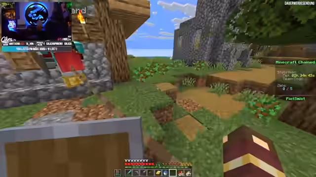 In einem aufregenden Minecraft-Abenteuer arbeiten vier Spieler Seite an Seite, um verschiedene Herausforderungen zu meistern. Mit der Fessel-Mod sind sie physisch verbunden und müssen koordiniert vorgehen. Das Team sammelt Ressourcen, erkundet Dörfer und Nether, um fünf Ziele zu erreichen: Besiegen des Enderdrachen, Level 30 jedes Spielers, 30 Vanilla-Achievements, zähmen eines Nautilus und Beschaffen einer Wither Rose.