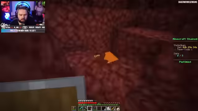 03:27:10Die Spieler versuchen, eine Festung im Nether zu finden, indem sie verschiedene Richtungen erkunden. Sie stoßen auf Basalt-Biome und Lavaseen, was ihre Suche erschwert. Sie diskutieren über die besten Routen und Strategien, um eine Festung zu finden, während sie gleichzeitig nach Ressourcen wie Quarz suchen. Die Koordination und Kommunikation im Team sind entscheidend für den Erfolg.