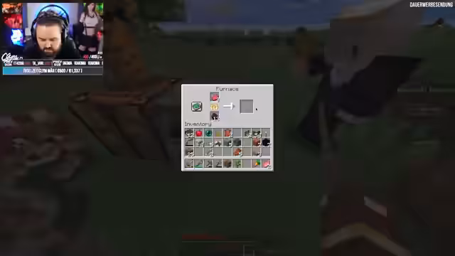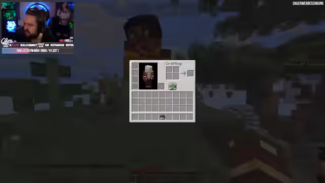 01:01:00Die Streamer warten auf die Möglichkeit, mit dem Fletcher Villager zu handeln, und stellen fest, dass sie in der Nähe bleiben müssen, um die Handelsmöglichkeiten zu nutzen. Nachdem der Villager eingeloggt ist, beginnen sie mit dem Handel und sammeln Emeralds gegen Holz ein. Sie erwerben genug Ressourcen, um Looting-Bücher zu bauen und verbessern ihre Ausrüstung für zukünftige Aufgaben wie den Drachenkampf im Ende.