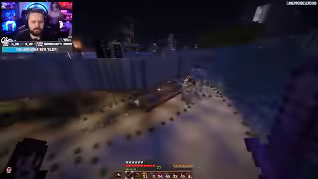 02:32:40Der Streamer zeigt den Fortschritt seines Baus in Craft Attack, eine Kuppel mit Energieschild aus Star Wars. Er erwähnt geplante Strukturen wie eine kleine Stadt, Farmen und einen Wasserfall. Nebenbei spricht er über sein stressiges Leben mit vielen Benachrichtigungen, seine liebe Familie und anstehende Termine wie ein Konzert und ein Essen mit seiner Mutter.