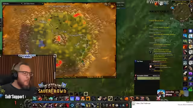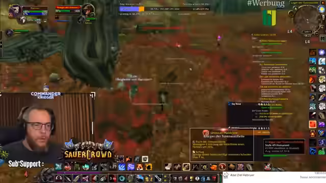 04:21:50Nachdem die unklare Geschichte nicht zu Ende erzählt wurde, konzentriert sich der Streamer wieder auf das Spiel und plant die nächsten Reiseziele wie Winterspring und die westlichen Pestländer. Eine wichtige Warnung wird bezüglich der 'Blut von Helden'-Objekte in den Pestländern ausgesprochen, die Level-60-Eliten spawnen und extrem gefährlich sind. Parallel interagiert das Publikum mit Anfragen und Spenden.