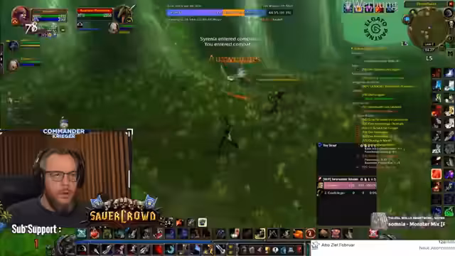 05:40:30Nachdem die Mission zur Holzschlundfest erledigt ist, konzentriert sich der Streamer darauf, Routen durch das Teufelswaldgebiet zu sichern und den Flugpunkt in Winterspring zu erreichen. Er erklärt, dass die Pfade im Osten sicher sind, solange man den Fluss nicht überquert. Der Weg über die Straße ist die bevorzugte Route, da dort nur eine bekannte Patrouille von fünf Monstern als Gefahr identifiziert wurde. Der Fokus liegt nun auf der sicheren Fortbewegung und dem gezielten Sammeln von Ressourcen.