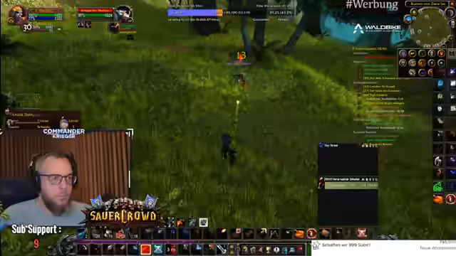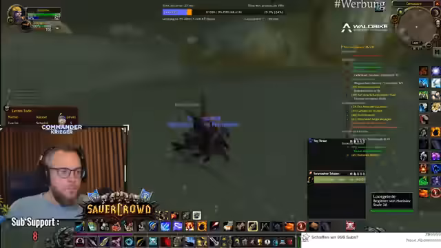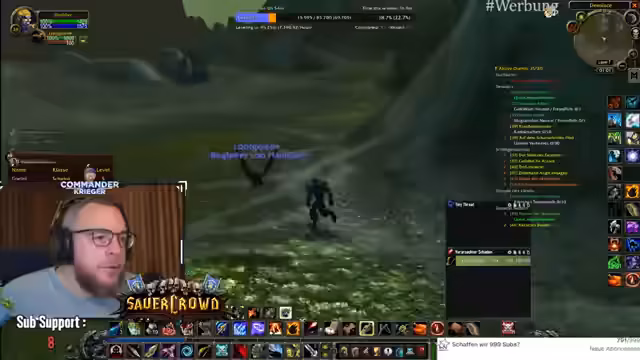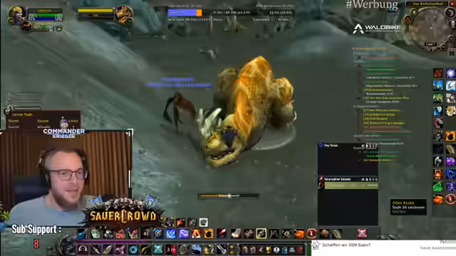 03:13:52Ein besonderes Highlight des Streams ist die Begegnung mit Rexxa, einem Champion der Horde, der im Warcraft 3-Spiel vorkommt. Der Streamer ist begeistert, diesen NPC in der Spielwelt zu sehen und beschreibt ihn als den Prototypen des Jägers auf der Horde-Seite. Er versucht sogar, Rexxars Begleitetier, einen Bären, zu zähmen, was trotz des ungewöhnlichen Vorschlags im Chat nicht gelingt, aber das Interesse der Zuschauer weckt.