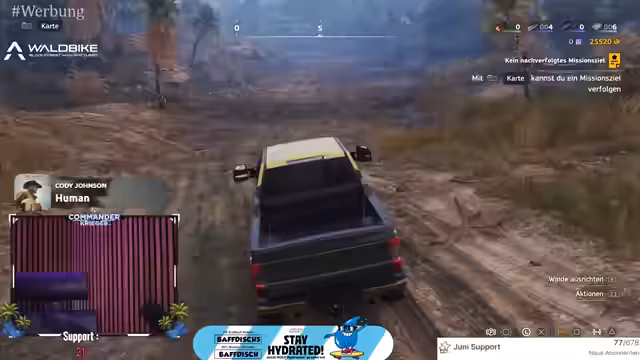 01:35:39Ein signifikanter Rückschlag ereignet sich, als der Streamer gelieferte Ressourcen, inklusive Betonfliesen und Stahlträger, aus dem Lager vermisst. Er mutmaßt, dass diese gestohlen wurden, was die Mission deutlich verzögert. Zusätzlich treten technische Probleme auf, als er versucht, Fotos im Discord zu teilen, aber auf eine Fehlermeldung stößt, dass die Datei nicht gefunden wird. Trotzdem verspricht er nach der Bearbeitung der Bilder ein Gewinnspiel für eine limitierte Trinkflasche von Holy durchzuführen.