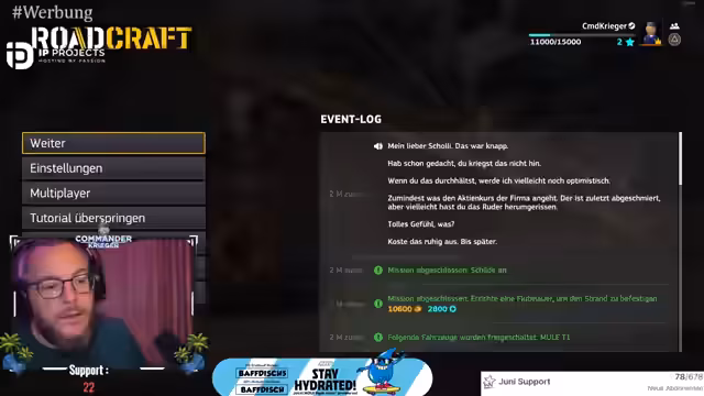 00:21:37Um die Mission voranzutreiben, besteigt der Streamer einen Bagger mit einem angebrachten Planiergerät. Dieses Gerät ist entscheidend, um Hindernisse aus dem Weg zu räumen und die Terrain zu ebnen. Der Wechsel zwischen verschiedenen Modi wie 'Marschieren' und 'Asphaltabriss' wird demonstriert, um die Funktionsweise zu verdeutlichen. Parallel dazu versucht er, eine Route für den Transport von Ressourcen zu einer vorgelagerten Basis einzurichten, was aufgrund von unvorhergesehenen Hindernissen wie verschütteten Wegen und einem torverschlossenen Zugang komplex wird.