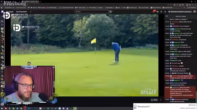 00:00:00Der Stream beginnt mit der Suche nach einem Ball im Wasserhindernis, wobei die Schwierigkeit des Auffindens und die Ablenkung durch andere Spielerinnen im Vordergrund stehen. Es wird über die Qualität der Bälle und Fehlschläge diskutiert, wobei ein Ball im Busch landet und ein anderer getoppt wird. Die Entfernung zum Grün wird auf 100-120 Meter geschätzt, und der Einsatz eines Achter-Eisens wird erwogen. Ein Schlag von sieben Metern wird thematisiert, wobei die Meisterschaft keine Priorität hat. Es folgen weitere Schläge, die im Graben landen, und die Suche nach dem Ball gestaltet sich schwierig. Der Zustand des Balls wird als widerwärtig beschrieben, und der Streamer äußert den Wunsch, über die Bäume zu spielen, während er mit technischen Problemen kämpft. Ein gelungener Schlag wird als potenzielles YouTube-Video identifiziert. Abschließend wird die Platzreife und die Anzahl der Putts thematisiert, wobei der erste Schlag im Teich landet und insgesamt acht Schläge benötigt werden.