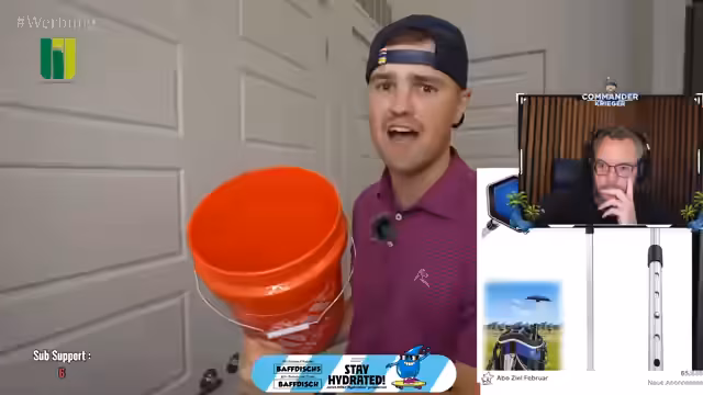 01:46:08Nach einer ausführlichen politischen Diskussion wechselt der Streamer das Thema und beginnt mit der Vorstellung und dem Test einer Vielzahl von skurrilen Golf-Gadgets. Er und sein Freund Michael probieren diverse Utensilien aus, darunter Bälle, die angeblich einen Slice verhindern, Griffe, die für einen perfekten Griff sorgen sollen, und ein Spray, um den Trefferpunkt auf dem Schlägerkopf sichtbar zu machen. Dabei werden viele der Produkte als nutzlos, unkomfortabel oder schlicht als Betrug entlarvt, was zu humorvollen Reaktionen führt.