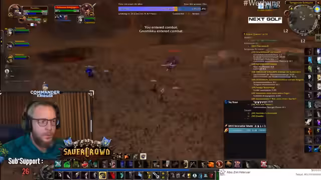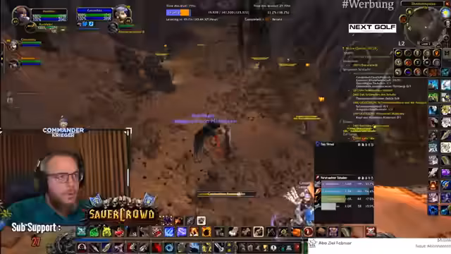02:43:25Die Gruppe konfrontiert eine anspruchsvolle 52er Elite-Quest, die eine hohe Konzentration und Koordination erfordert. Die Kämpfe finden in einem stark frequentierten Gebiet statt, was durch die Anwesenheit vieler anderer Spieler und den damit verbundenen Lag-Problemen erschwert wird. Die Strategie beinhaltet das gezielte Pullen der Gegner und das Verteilen der Gruppe, um eine effektive Kampfführung zu gewährleisten. Trotz der Herausforderungen, wie zufällige Aggro-Effekte der Gegner und Server-Instabilitäten, wird die Quest als machbar und lohnend für die Erfahrungspunkte (XP) betrachtet.