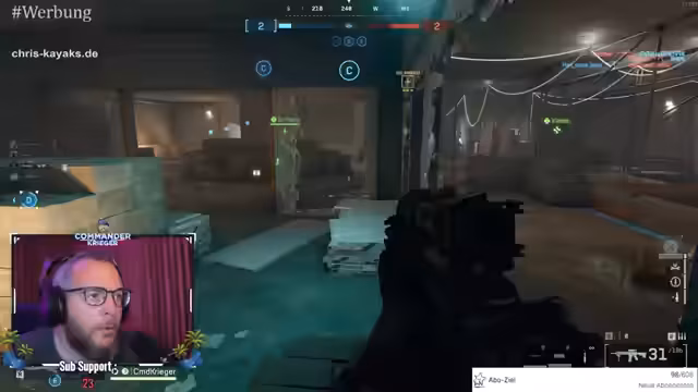 00:10:06Nachdem der Streamer in das Spiel eingestiegen ist, beginnt er, den Spielstil und die Maps zu analysieren. Er stellt fest, dass das Movement zwar langsam wirkt, aber der Charakter doch sehr schnell sterben kann, insbesondere durch Waffen wie die Shotgun. Er beschreibt seine Erfahrung auf einer kleinen 8-gegen-8-Map, in der das Vorrücken erschwert ist und das Spawn-Trapping ein Problem darstellt. Der Streamer kritisiert, dass Kriegsbänder (Fußschrittgeräusche) unzuverlässig funktionieren und das Zuhören der Gegner oft unmöglich macht, was das taktische Vorgehen erheblich erschwert.