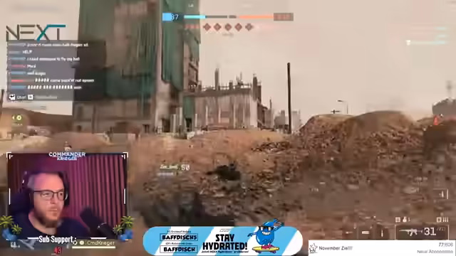 In einer Spielrunde von Battlefield 6 stellt sich ein Spieler intensiven Gefechten. Die Einführung beginnt mit dem Spiel 'Dark and Darker', einem Hardcore Fantasy FPS Dungeon PvPvE-Abenteuer. Der Spieler muss feindliche Fahrzeuge wie Panzer und Helikopter zerstören, was präzises Teamplay und strategisches Vorgehen erfordert. Die Effektivität von Waffen und die Herausforderungen durch Sniper und gegnerische Fahrzeuge prägen das Gameplay. Trotz Rückschlägen bleibt die Entschlossenheit, Missionen zu erfüllen und Gegner zu besiegen.