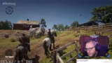 01:00:11Ein Hauptbestandteil des Streams ist die Rolle eines Farmers in der Spielwelt, was durch zahlreiche dialogreiche Interaktionen geprägt ist. So führt ein Gespräch mit einem Waffenhändler über Munitionsgeschäfte, bei denen Ausnahmen von Regeln für Gewerbetreibende gemacht werden. Des Weiteren werden tägliche Aufgaben wie das Versorgen von Vieh und der Verkauf von Produkten wie Eier und Milch erwähnt, was den Farmalltag realistisch darstellt und die Wirtschaftlichkeit des Betriebs unterstreicht.