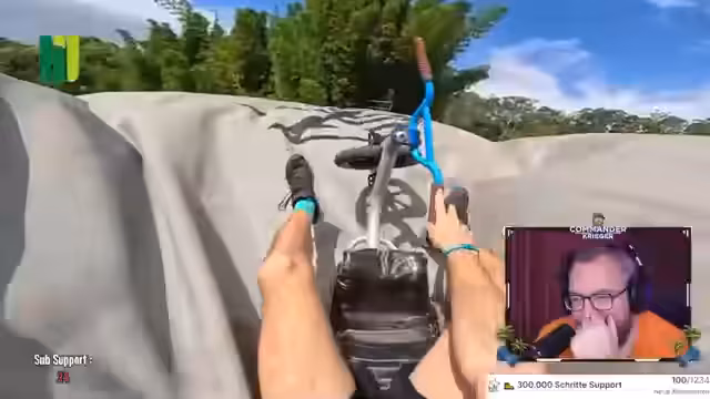02:32:45Ein absolutes Highlight der Reise ist das Treffen mit dem achtfachen Goldmedaillen-Gewinner und Nitro-Circus-Fahrer Ryan Williams. Der Streamer und sein Team besuchen dessen privaten Parcours, das 'AW-Land', das Rampen und Airbags bietet. Nach einem Rope-Springen werden sie von Ryan selbst in die Kunst des Sprunges eingeweiht. Der Streamer versucht sich an verschiedenen Sprüngen, darunter mit einem Dreirad, und zeigt beeindruckende Fortschritte, auch wenn einige Versuche scheitern.