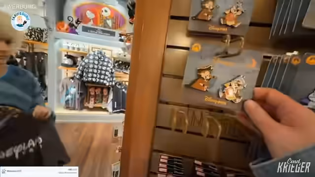 02:41:39Ein weiterer Höhepunkt ist das Pin Trading, ein beliebtes Sammlerhobby im Disneyland. Die Streamer durchforsten die Läden nach Pins, halten Ausschau nach seltenen Stücken und diskutieren über die Ästhetik der Sammlerstücke. Es wird der Versuch unternommen, Fotos mit den Charakteren wie Chip und Dale zu machen, jedoch stößt man auf Herausforderungen mit den Warteschlangen. Der Stream ist auch geprägt von technischen Schwierigkeiten mit der Verbindung und dem Mikrofon, die den Genuss bei manchen Aktivitäten trüben.
