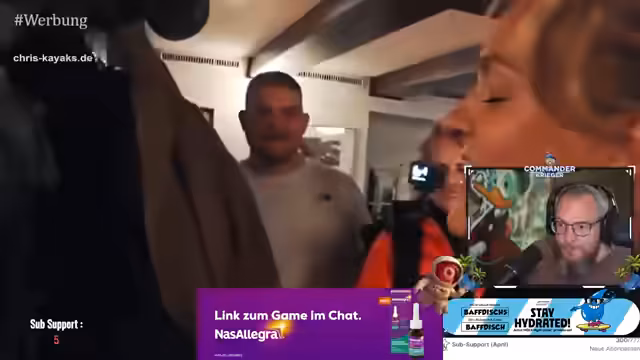 01:55:55Nach einer kurzen Pause geht es mit der Überraschungsaktion weiter. Die Streamer berichten von den Reaktionen der Gäste und bewerten den Erfolg ihrer Aktion. Sie tauschen sich über mögliche nächste Schritte aus und planen weitere Aktivitäten. Dabei wird auch auf technische Aspekte des Filmens eingegangen und die Zusammenarbeit zwischen den Beteiligten diskutiert.