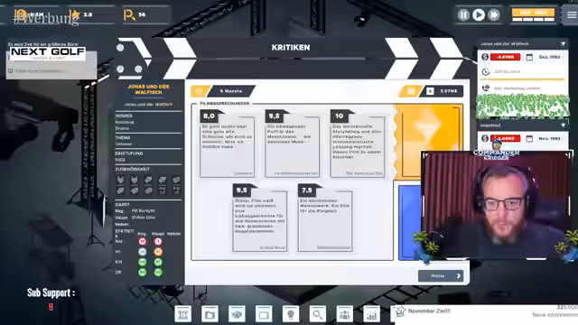 03:33:52Zusammenfassend lässt sich sagen, dass der Stream eine Mischung aus persönlichen Anekdoten, strategischem Gameplay und einer kreativen Simulation bietet. Es war eine Reise von einem gemeinsamen Erlebnis in Disneyland bis zum Aufbau eines virtuellen Filmimperiums. Der Streamer beweist sowohl seine Fähigkeit, emotionale und persönliche Geschichten zu teilen, als auch seine strategische Kompetenz im Gaming und Management. Der Stream endet mit der Spannung um die mögliche Auszeichnung für den Film Jonas und der Wallfisch, der das gesamte Projekt abschließt.