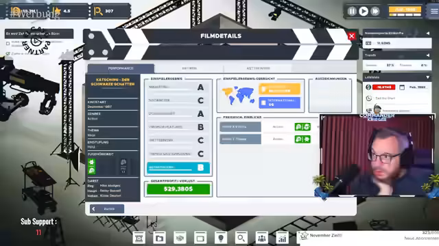 03:22:44Die letzte Phase des Streams zeigt, wie der Streamer sein Filmstudio trotz finanzieller Rückschläge weiter ausbaut. Ein Weihnachtsfilm floppt, was zu einem deutlichen Verlust führt. Um das Geld wieder hereinzuholen, produziert er einen Action-Thriller mit Gangster-Elementen. Parallel dazu entwickelt er einen Teenager-Film mit dem Titel "Jonas und der Wallfisch", der für einen bedeutenden Filmpreis nominiert wird, was eine wichtige Anerkennung für sein Studio darstellt, trotz anfänglicher finanzieller Misserfolge.