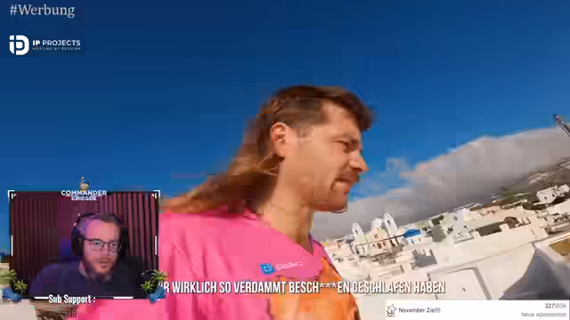 08:28:21Der Streamer und seine Gruppe sind auf der griechischen Insel Santorini und nutzen das gute Wetter für Abenteuer. Sie besuchen den Schwarzen Strand, machen Klippensprünge und erkunden verlassene Gebäude für die Übernachtung. Es werden ikonische Orte wie die drei Stufen für Sprünge besucht und die Gruppe versucht, einen zehn Meter hohen Seilsprung zu meistern. Ein Parcours mit Dächern wird als 'Vollparadies' beschrieben.