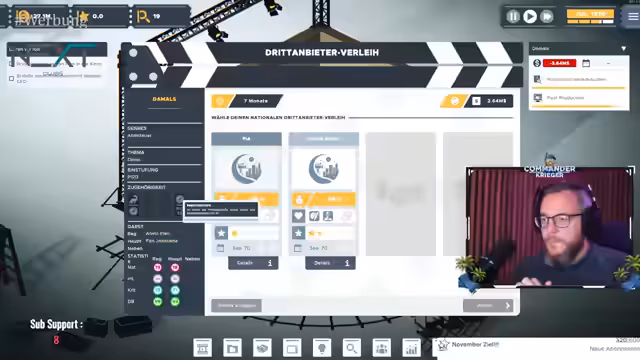01:38:23Nach einigen Runden Battlefield 6 wechselt der Streamer das Spiel und startet "The Executive", ein Spiel über den Aufbau eines Filmstudios. Mit einem Startkapital von 30 Millionen Dollar schlüpft er in die Rolle eines aufstrebenden Produzenten. Seine erste Aufgabe ist die Produktion eines Films, wobei er Genre, Thema, Budgetverteilung und die Auswahl von Schauspielern und Regisseuren steuert. Sein Erstlingswerk, ein Abenteuerfilm über Dinosaurier, erhält gemischte Kritiken, was ihm wichtige Lektionen für zukünftige Produktionen vermittelt.