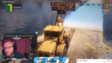 03:50:35Zuerst wird über die Spielmechanik gesprochen, wobei die Schwierigkeiten bei der Steuerung eines speziellen Fahrzeugs, des Bulldozers, im Vordergrund stehen. Der Streamer ist frustriert, weil sein Fahrzeug im Sand stecken bleibt und nicht weiterkommt, während sein Kollege vorgeht. Er beschreibt den Ort als Marsch der Welt und weist darauf hin, dass man den Kran nutzen kann, um zur Hilfe zu eilen, aber die eigene Fahrt im Gelände stockt.