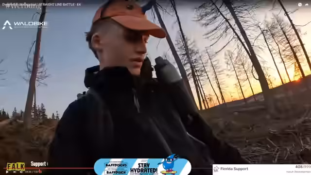 00:01:02Der Streamer startet in das Straight-Line-Battle, eine Challenge, bei der er in einer möglichst geraden Linie durch den Wald laufen muss. Er äußert sich zunächst unzufrieden mit seiner Position, die leicht von der geplanten Linie abweicht. Ein zentrales Thema ist die fehlende Kamera; da er später zu Zabex und Schradin fährt, ist die Technik bereits im Rucksack verpackt, was einen IRL-Stream unmöglich macht. Dies erfordert, dass er die restliche Zeit mit einer GoPro weitermacht und das Publikum primär über seinen Audio-Kanal informiert.