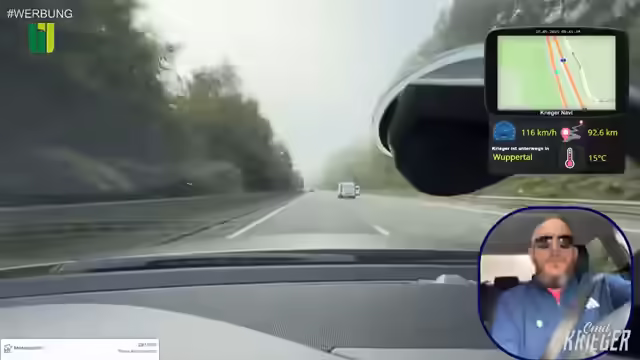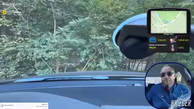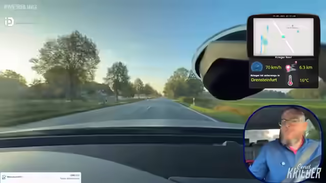 01:43:52Die Fahrt führt entlang eines Bächle zum Növerhof, wobei die malerische Umgebung mit 50 km/h genossen wird. Es werden Beobachtungen über die dampfenden Rasenflächen und die Schönheit der Natur geteilt. Ein kurzer Moment der Irritation entsteht durch ein AfD-Plakat im Wald, das die Stimmung trübt. Die Funktionalität der Technik wird überprüft, wobei der Akkustand dank des Zigarettenanzünders bei 100% liegt. Die Fahrt wird als Ode an die Schönheit beschrieben, bevor es zu einer kurzen technischen Unterbrechung kommt.