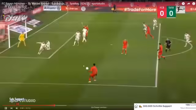 06:27:35Anschließend wechselt der Streamer das Thema und berichtet über das Fußballspiel des SV Werder Bremen gegen den FC Bayern München. Er kommentiert das Spiel live, beschreibt die Spielzüge, Torchancen und die Dominanz der Bayern. Er erwähnt das Fehlen von Toren in der ersten Halbzeit und analysiert das starke Abwehrverhalten von Werder. Nach der Pause kommentiert er die Führung der Bayern durch einen Elfmeter von Harry Kane, der in der 56. Minute erzielt wurde, und beschreibt die Reaktion beider Teams auf das Tor.