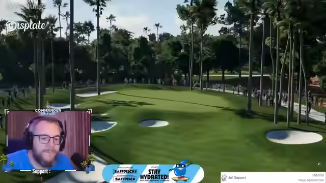 03:19:45Während des Streams kommt es zu einer Unterbrechung, als der Streamer eine Klingel hört. Er erklärt, dass er für eine halbe bis dreiviertel Stunde etwas erledigen muss, aber direkt zurückkommen wird. Dies unterbricht die laufende Aktion im Golfspiel, ohne dass ein konkretes Spielgeschehen stattfindet.