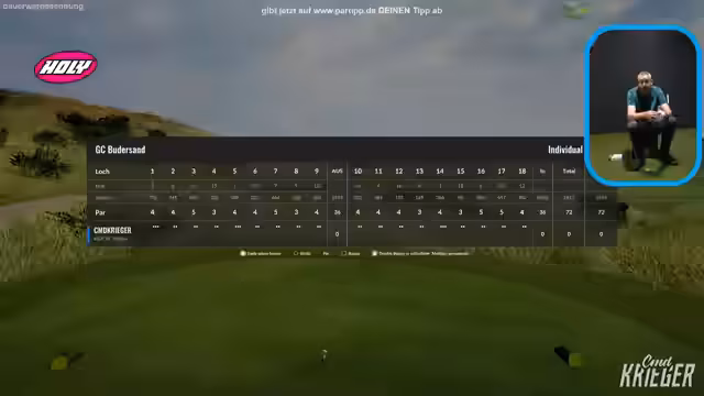 00:39:58Der Streamer zeigt die Scorecard des Golf-Clubs Budersand und erklärt den Aufbau des Platzes, einschließlich der Lochanzahl und der Unterscheidung zwischen Front9 und Back9. Er erläutert die Bedeutung von Par 3, Par 4 und Par 5 Löchern und wie viele Schläge ein professioneller Spieler dafür benötigen sollte. Anschließend erklärt er das Handicap-System: Jeder registrierte Golfspieler erhält ein Handicap, das seine Spielstärke widerspiegelt. Er selbst startete mit einem Handicap von 54 und hat es auf dem Trackman auf 30,4 verbessert. Dieses Handicap wird zur Berechnung der Spielvorgabe genutzt, die wiederum für das Tippspiel auf Parttip.de relevant ist. Die Zuschauer können seine aktuelle Spielvorgabe übernehmen oder eigene Tipps abgeben.