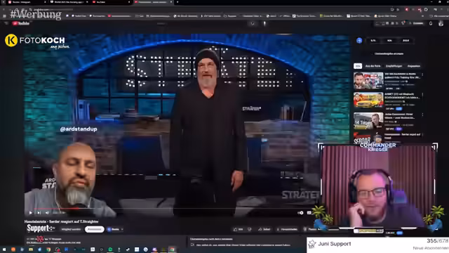 04:49:40Gegen Ende des Streams wird der Comedian Thorsten Sträter thematisiert. Sein Stil wird als elaboriert und mit absurden Vergleichen beschrieben. Der Streamer analysiert dessen Markenzeichen wie die Hasta-la-Vista-Geste und den Vorwurf des Arroganz, relativiert dies aber auch. Es wird sein Werdegang von Slam-Poetry zu einem der erfolgreichsten Comedians in Deutschland beleuchtet und sein komödiantischer Stil kritisch hinterfragt.