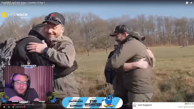 02:00:10Das Stream-Event beginnt mit einer Ankündigung eines Events, bei dem Teams einen 15-Kilometer-Lauf absolvieren müssen, um einer Monsterhorde zu entkommen. Ein kurzer, zweisecündiger Schnitt im Auto sorgt für Verwirrung, da er scheinbar keinen Zweck erfüllt und von einem Cutter eingefügt wurde. Die präsentierten Teams, wie die Crazy Monkeys, werden vorgestellt, während die Kommentatoren versuchen, Spannung aufzubauen. Der Kommentator ist sichtlich begeistert, während die Streamer die ersten Schritte machen, um den Startpunkt zu erreichen.