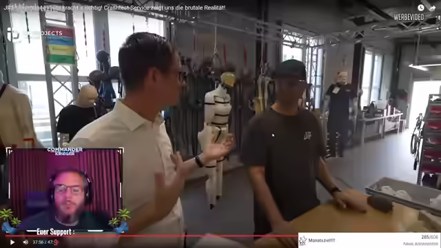01:16:19Ein spezieller Dummy aus einem Filmset wird gezeigt, der sich bewegen und seinen Oberkörper entspannen kann. Dieser Dummy verfügt über Muskelnachempfindungen, die für Low-Speed-Crash-Tests verwendet werden, um die Anspannung des Fahrzeugführers vor dem Unfall zu simulieren. Diese Entwicklung erfolgte in Zusammenarbeit mit Universitäten im Rahmen von Forschungsprojekten. Es wird auch ein Dummy einer 140-Kilo-Frau erwähnt, der für einen Unfall in einem Freizeitpark nachgebaut wurde, bei dem die Dame aus einer Achterbahn rutschte. Der Streamer betont, dass Unfälle tagtäglich passieren, auch im Haushalt und in der Landwirtschaft, und dass die Dummies für verschiedene Szenarien eingesetzt werden, bei denen Menschen gefährdet sind. Er erwähnt einen Fall, bei dem eine Frau bei voller Fahrt aus einer Achterbahn stürzte und trotz Wiederbelebungsversuchen starb, wobei die Ermittlungen ergaben, dass es sich um einen tragischen Unfall ohne Fremdverschulden handelte. Abschließend bedankt sich der Streamer für den interessanten Tag und den Einblick in die Arbeit mit den Dummies.
