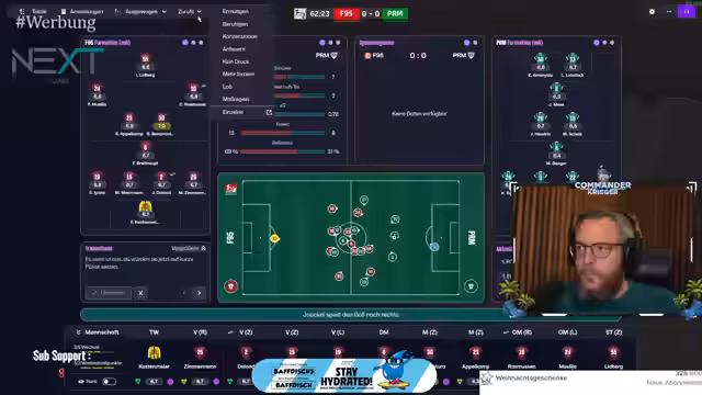 00:02:48Nach dem Laden eines Spielstands diskutiert der Streamer taktische Überlegungen für das bevorstehende Spiel gegen Preußen Münster. Es folgt eine detaillierte Analyse verschiedener Formationen mit besonderem Fokus auf das Halbesitzspiel. Die Entscheidung für eine spezifische Formation wird getroffen und auf die Gegnerstrategie abgestimmt.