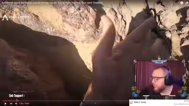 00:47:47Völlig unvermittelt wechselt der Streamer das Thema und schaltet zu einem kurzen Clip von einem Fahrradreisenden, der sich derzeit im Iran befindet. Es wird gezeigt, wie dieser Mann mit einem 30 Jahre alten Rennrad durch das Land fährt und Tuk-Tuks, Festungen und den roten Strand besucht. Der Streamer unterbricht diese Story mit einem eigenen Clip aus der Vergangenheit, der ihn auf Hormuz Island im Iran zeigt und ebenfalls den Handel mit lokalen Produkten und die feinen Sande zeigt.
