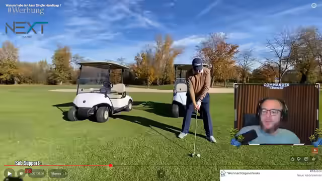 02:43:19Der Streamer kündigt zukünftige Golf-Events an, darunter ein Spiel mit Max im Golf-Landclub Köln und einen Stream vom Uvenhof. Er betont, dass er bei diesen Events streamen wird, die Kamera jedoch während des eigentlichen Turniers ausgeschaltet bleibt. Es wird ein Werbevideo für Schloss Miel gezeigt, das die Anlage als elitär und anspruchsvoll beschreibt, wo Golf vom Sport zum Erlebnis wird. Eine Zuschauerin bedankt sich für die Videos aus ihrer Kindheit, was den Streamer emotional berührt. Anschließend wird ein Video über den Golfclub Aldrupperheide gezeigt, den der Streamer gerne gespielt hätte, aber aufgrund von Clubmeisterschaften und Zeitmangel nicht konnte. Ein weiteres Video behandelt die Frage, warum viele Golfer, einschließlich des Protagonisten, kein Single Handicapper werden, und beleuchtet die Rolle von Fitness, Taktik und Technik. Ein Single Handicapper und ein Golf Pro geben Tipps zur Verbesserung des Spiels, wobei die Bedeutung von Beweglichkeit und Kraft hervorgehoben wird.