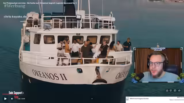 00:10:36Die Expedition führt über 36 Stunden von Punta Neras über den offenen Pazifik zur Isla del Coco, einer dicht bewachsenen Insel mit Wasserfällen, umgeben von einem der artenreichsten Meere der Welt. Diese Insel ist bekannt für Hammerhaie, Galapagoshaie und Orcas und wird als Hotspot für die größten Räuber der Ozeane sowie als grünes Paradies mit einzigartigen Pflanzen beschrieben – der perfekte Ort, um einen Schatz zu verstecken. Sebo wird in die Geheimnisse des Schatzes von Lima eingeweiht, die der Streamer in Deutschland von Dr. Ina Knobloch, einer absoluten Expertin, erfahren hat. Dr. Knobloch setzt sich seit Jahren für den Naturschutz der Kokosinsel ein und teilt spannende Details über die Geschichte der Insel. Es wird betont, dass die Schatzsuche mit Genehmigung erfolgt und keine Schatzjäger angelockt werden sollen, da viele gierige Menschen unterwegs sind. Die Hauptmission ist nicht das Suchen des Schatzes, sondern das Herausfinden, warum er bis heute nicht gefunden wurde. Gleichzeitig versucht der Streamer, die fünf größten Haie unter Wasser zu fotografieren, darunter Galapagos-Haie, Wal-Haie, Tiger-Haie, Silky-Sharks und Hammer-Haie.
