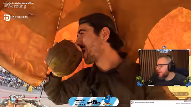 02:36:08Annika führt weiterhin die Liste mit 162.000 Schritten an, während Uwe stark aufgeholt hat und Daniel beachtliche 237 Kilometer mit dem Rad zurückgelegt hat. Respekt für diese Leistungen. Der Streamer leitet dann über zu einem Reisebericht aus Ghana, beginnend in Accra, Jamestown, bekannt für seine besonderen Beerdigungsrituale. Er trifft auf seinen Guide Shack, einen sehr positiven Menschen, dem er ein Wichtelgeschenk vom Monty Event wünscht. Während der Erkundung trifft er zufällig Joshua Klotti, einen der bekanntesten Boxer Ghanas und ehemaligen Weltmeister im Weltergewicht, der 2008 gegen Manny Pacquiao kämpfte. Der Streamer genießt eine Kokosnuss und betont die Schönheit Ghanas, obwohl der Flug etwas teuer ist.