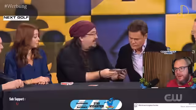 00:00:20Der Streamer führt einen Kartentrick vor, den er auf YouTube gelernt hat. Er bittet das Publikum, 'Stop' zu rufen, während er mit einem gemischten Deck arbeitet. Der Trick zielt darauf ab, eine ausgewählte Karte vorherzusagen, wobei er den 'König' als Schlüsselelement einsetzt. Trotz technischer Schwierigkeiten und Verwirrung über die Anweisungen demonstriert er die Illusion mehrfach, interagiert mit dem Chat und erwähnt persönliche Anekdoten, wie den Besuch seiner Freundin vor einer Woche. Die Sequenz endet mit dem Erfolg des Tricks und Beifall im Chat.